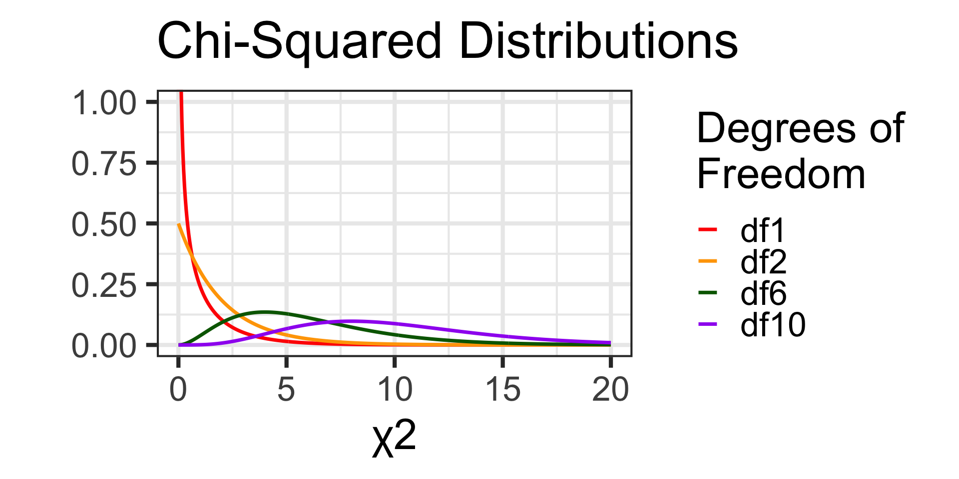 Actually, the Chi-Squared distribution isn’t a single distribution – it is a family of distributions defined by a single parameter…degrees of freedom.