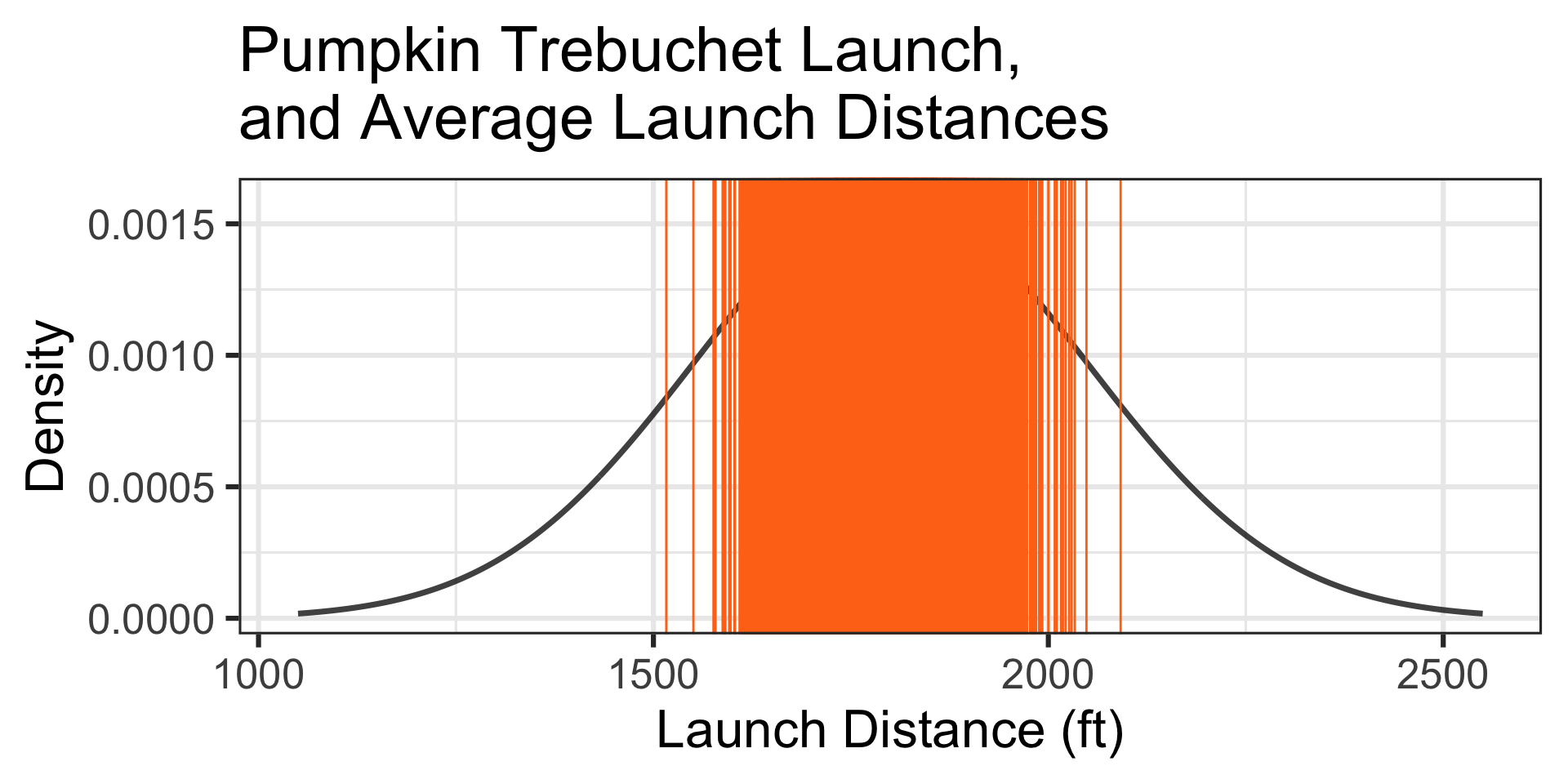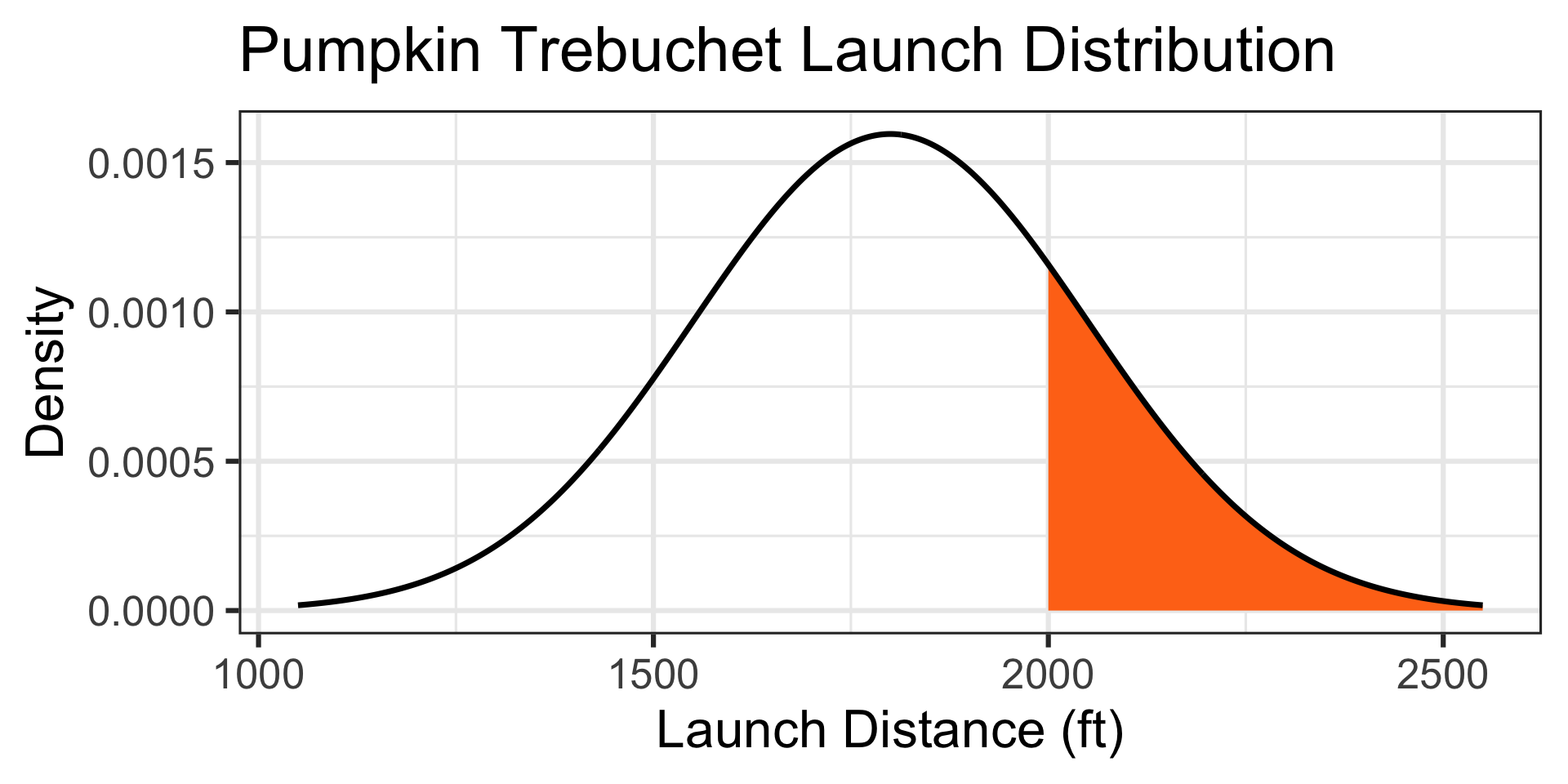 There’s about a 21.19% chance that a randomly selected pumpkin will be launched further than 2,000ft.