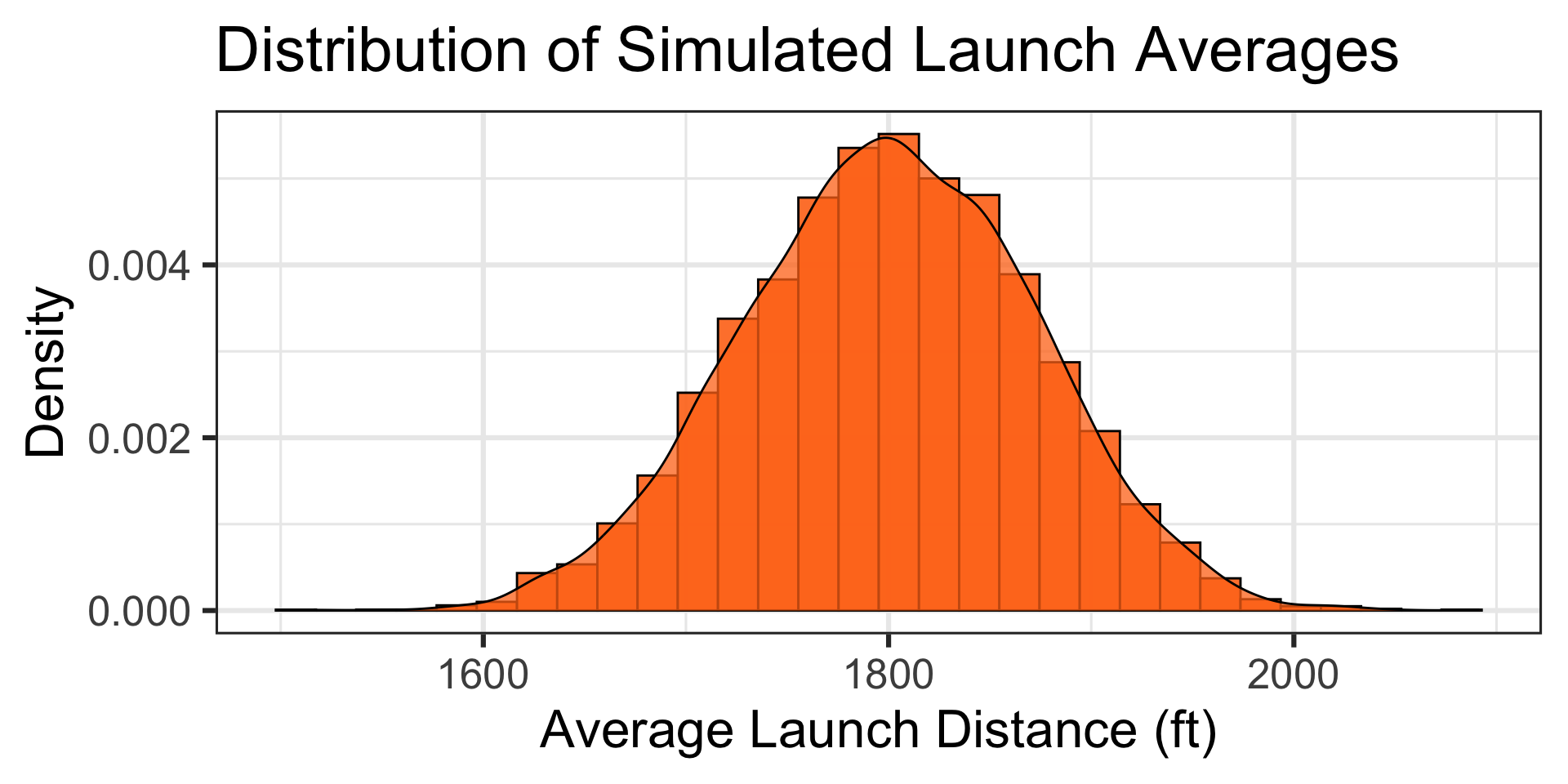 Observing an average launch distance this long is extremely unlikely if the average launch is really 1,800ft. This team’s trebuchet is likely much stronger than the average trebuchet!