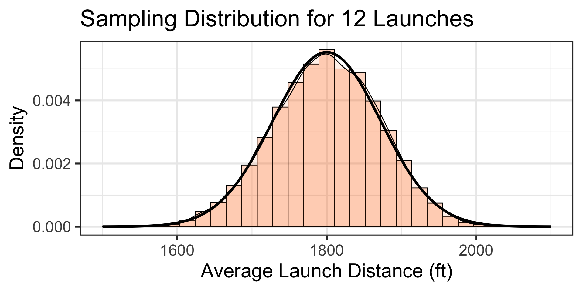 Note that the population distribution of launch distances is not skewed (it is approximately normal).
