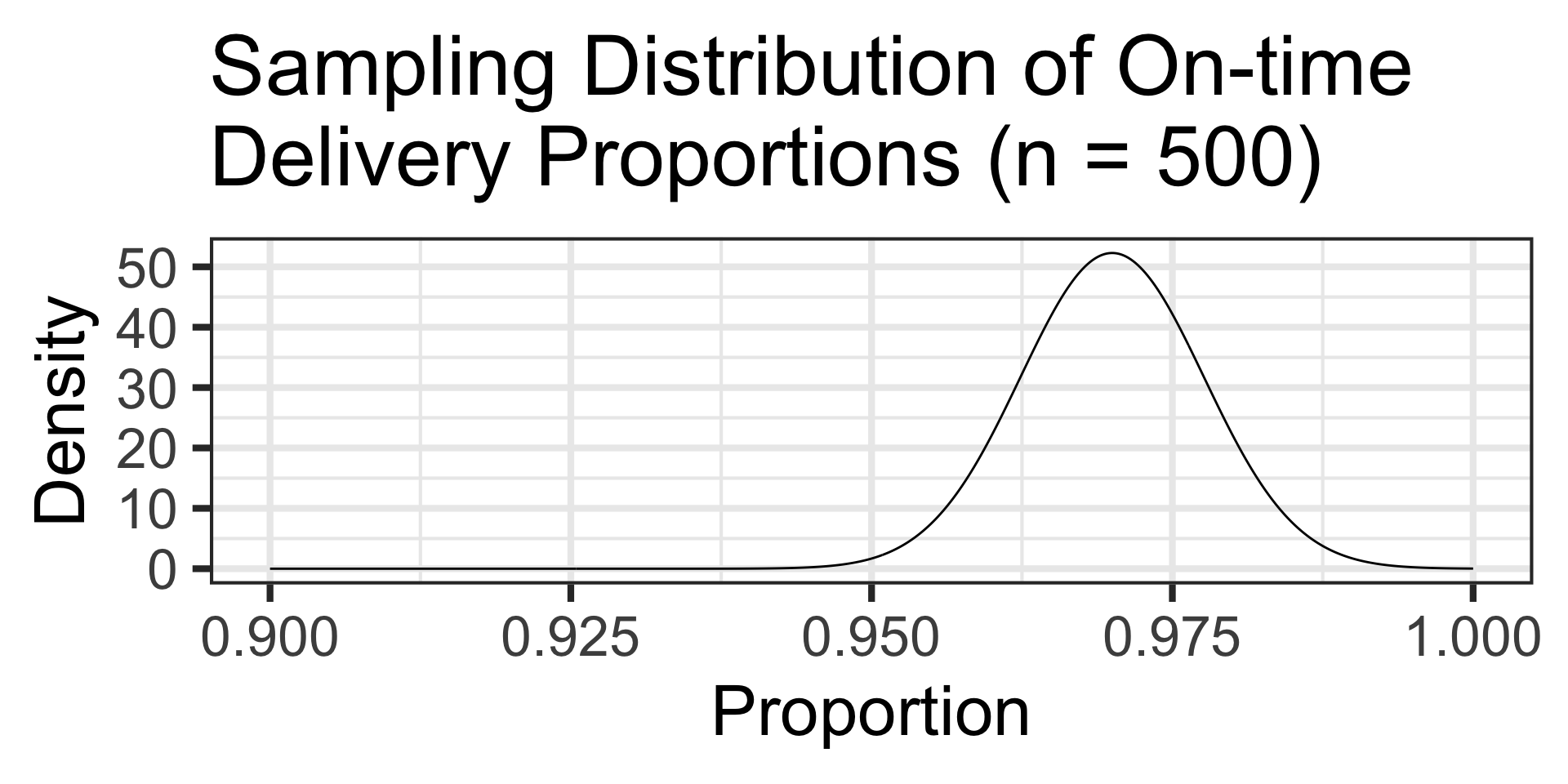 The probability of observing 95% or lower on-time package delivery proportions is…