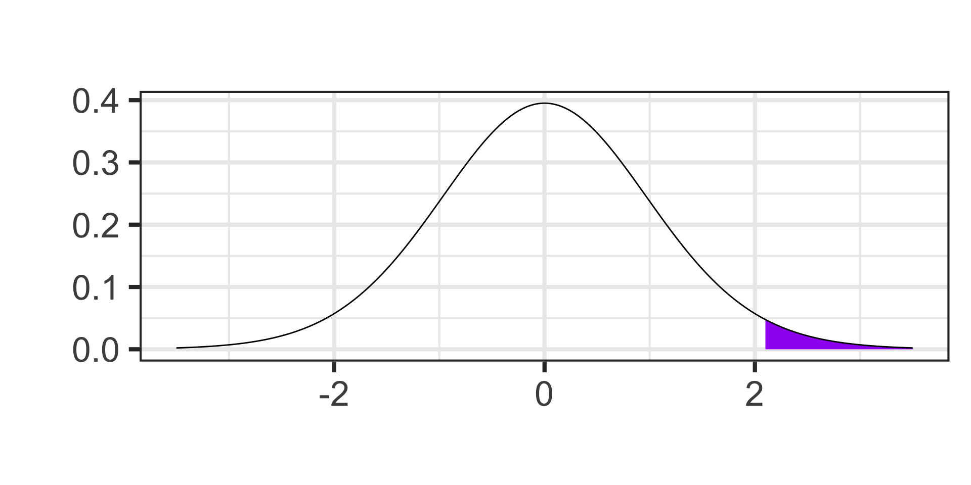 1 - pt(2.1, df = 26) \(\approx\) 0.0227907