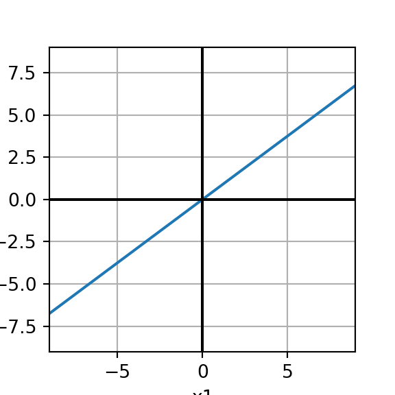 Example 2: Consider the plot to the left in which the blue line is the set \(H\). Assume that \(H\) extends infinitely in both directions. Determine whether or not \(H\) is a subspace of \(\mathbb{R}^2\).