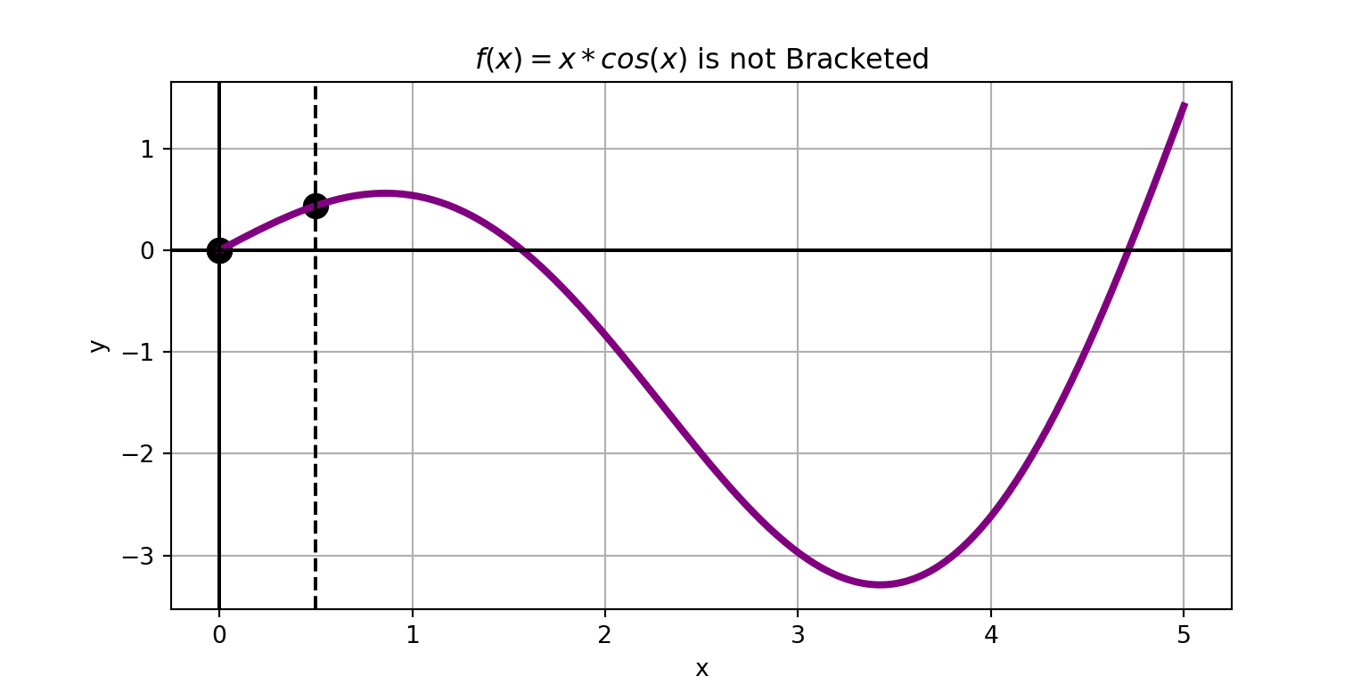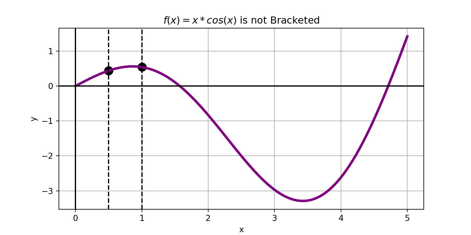 print("The interval [x1, x2] is not bracketed. \nPlease provide a bracketed interval to start.")