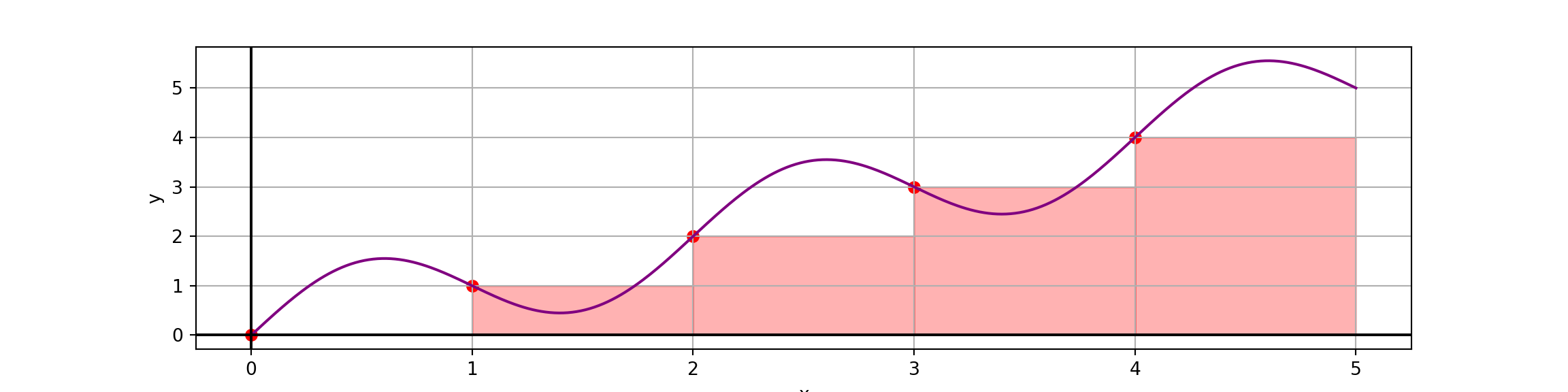 In order to approximate \(\displaystyle{\int_{a}^{b}{f\left(x\right)}}\), Newton-Cotes Formulae take the following steps: