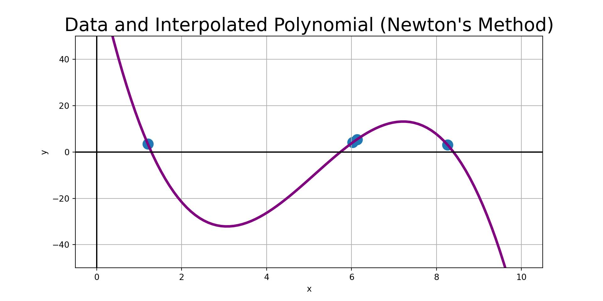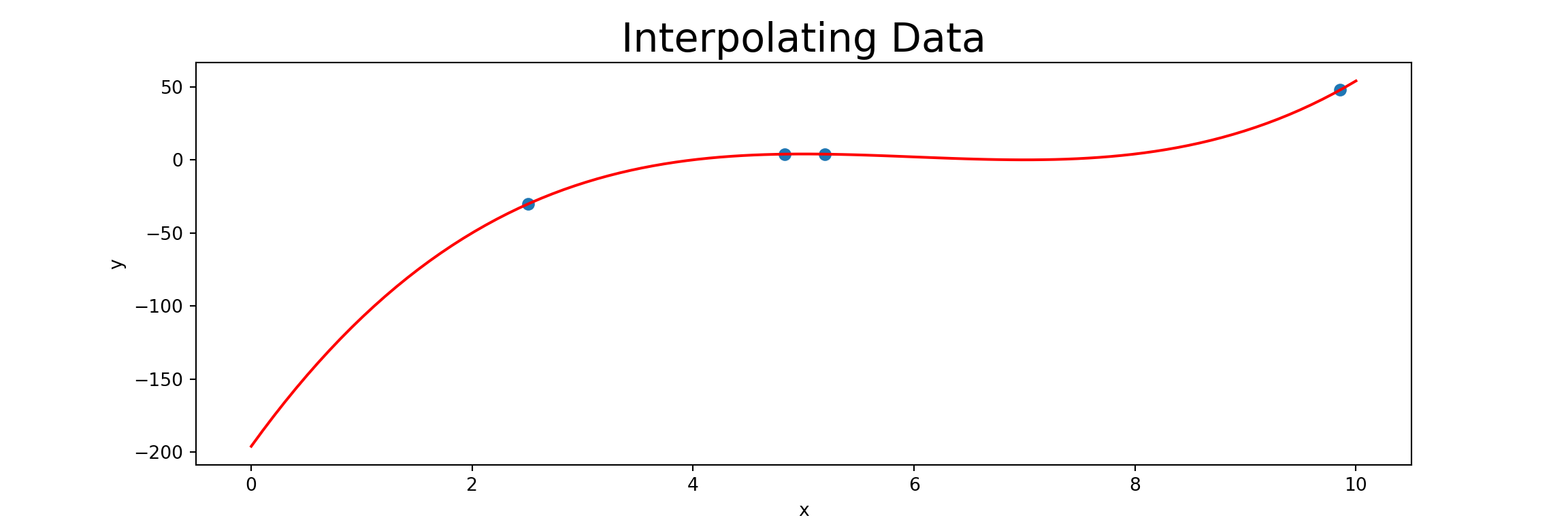 For example, a degree three polynomial (an interpolant on four data points) is given by
