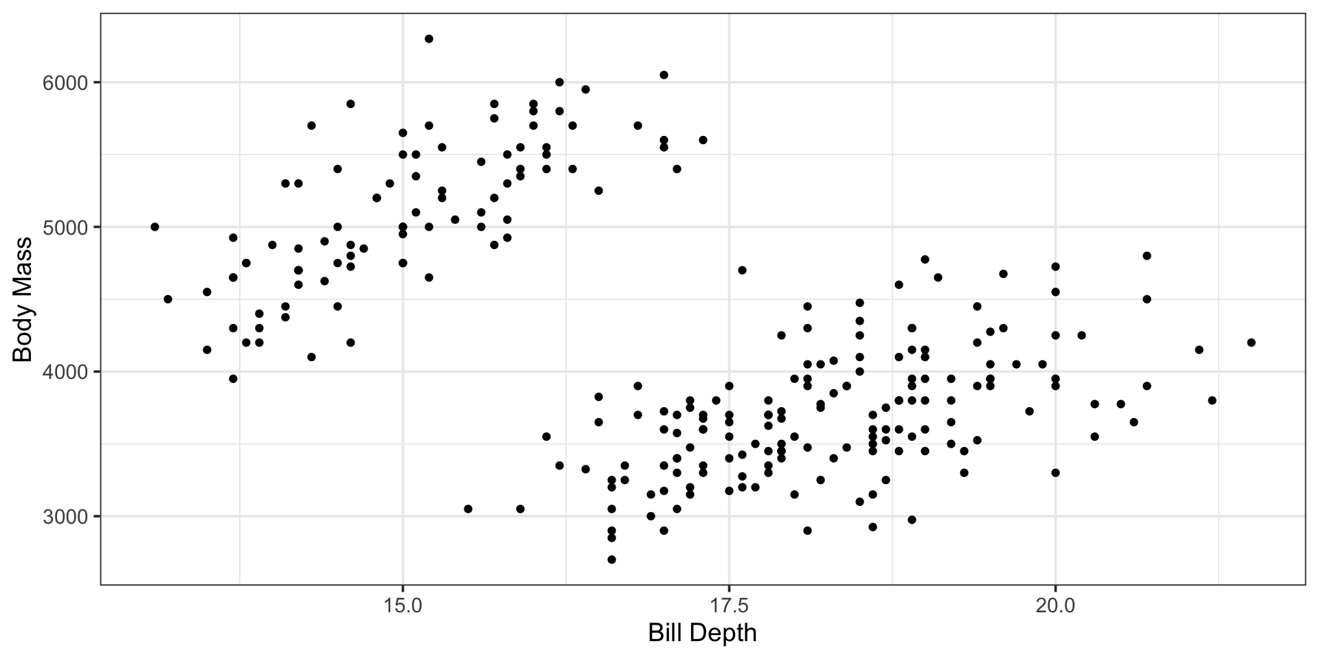 \[\mathbb{E}\left[\text{body mass}\right] = \beta_0 + \beta_1\cdot\left(\text{???}\right)\]